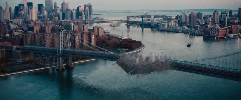Un autre problème empêche le fonctionnement de « The Dark Knight Rises » et son rapprochement aux précédents opus: la disparition de Gotham. En effet, Christopher Nolan avait tout fait pour que le rapprochement entre Gotham (mégalopole verticale imaginaire) et New-York (mégalopole verticale réelle) ne puissent se faire. « Batman Begins » ne marquait pas encore cette envie de créer une nouvelle ville à la « Métropolis » de Lang, mais le but de « The Dark Knight » était de créer un Gotham à travers des images d’autres villes existantes et dont les images sont moins gravées dans l’imaginaire collectif. Le tournage aura alors lieu à Chicago, en ajoutant des visions de Los Angeles et de Baltimore et un soupçon de Hong-Kong qui attire par son ultra-verticalité les tournages du monde entier. Même si techniquement, le tournage de « The Dark Knight Rises » condense Pittsburgh, Los Angeles et New-York pour continuer de créer un Gotham unique. Le réalisateur fait l’enfantine erreur de faire des plans globaux vue du ciel de New-York pour montrer cette ville-île coupée du monde et qui doit se battre contre elle-même. Il ne faudra même pas une demi-seconde pour que le spectateur place le nom de « New-York » sur ces images et détruisent à tout jamais la ville crée par Nolan. Cette erreur est bien plus grave qu’il n’y paraît. Car l’univers de Batman fonctionne extraordinairement bien justement parce qu’il est situé dans une sorte de monde parallèle au notre où le fantastique est permis et où il peut s’épanouir. Mais par l’identification de ces images de New-York, le spectateur va se rendre compte de l’impossibilité d’un tel fonctionnement social au sein d’une réalité qui est la sienne. Les incohérences font surface, et ne pourront plus être mise de côté. Un super-héros dans un monde réel est dur à accepter et facilement pointer du doigt par son absurdité.