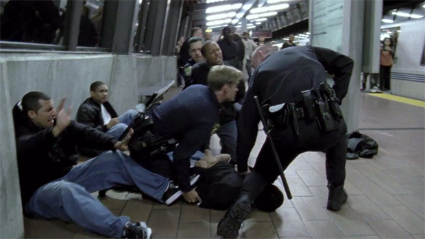 Tout l’art de Dupieux réside dans une traque des représentations conventionnelles, et donc du sérieux, par le prisme de l’absurde. Après l’introspection psychologique dans le délire sociopathe d’un pneu (Rubber) et la télékinésie entre un chien et son maître (Wrong), c’est à la nature vicieuse et destructrice de l’homme que s’attaque le réalisateur. Il renverse, avec délice, la question de l’éthique morale des hommes de lois – généralement déshumanisés et réduits au rang de vertus vivantes. Ici, ce sont les citoyens lambda qui tentent de freiner les électrons libres que sont les wrong cops. Ces derniers profitent de l’impunité gagnée par leurs badges pour commettre leurs exactions : Duke (Mark Burnham, excellent) est trafiquant de drogue qu’il cache avec délectation dans des rats ou des poissons morts (génialissime scène d’ouverture) ; Shirley (Arden Myrin) est maître-chanteur ; Renato (Eric Wareheim) est un pervers sexuel. Dans cet environnement absurde, Quentin Dupieux rajoute des gags percutants comme un homme blessé par balle qui ne meurt jamais, une policier sans talent qui se rêve DJ.