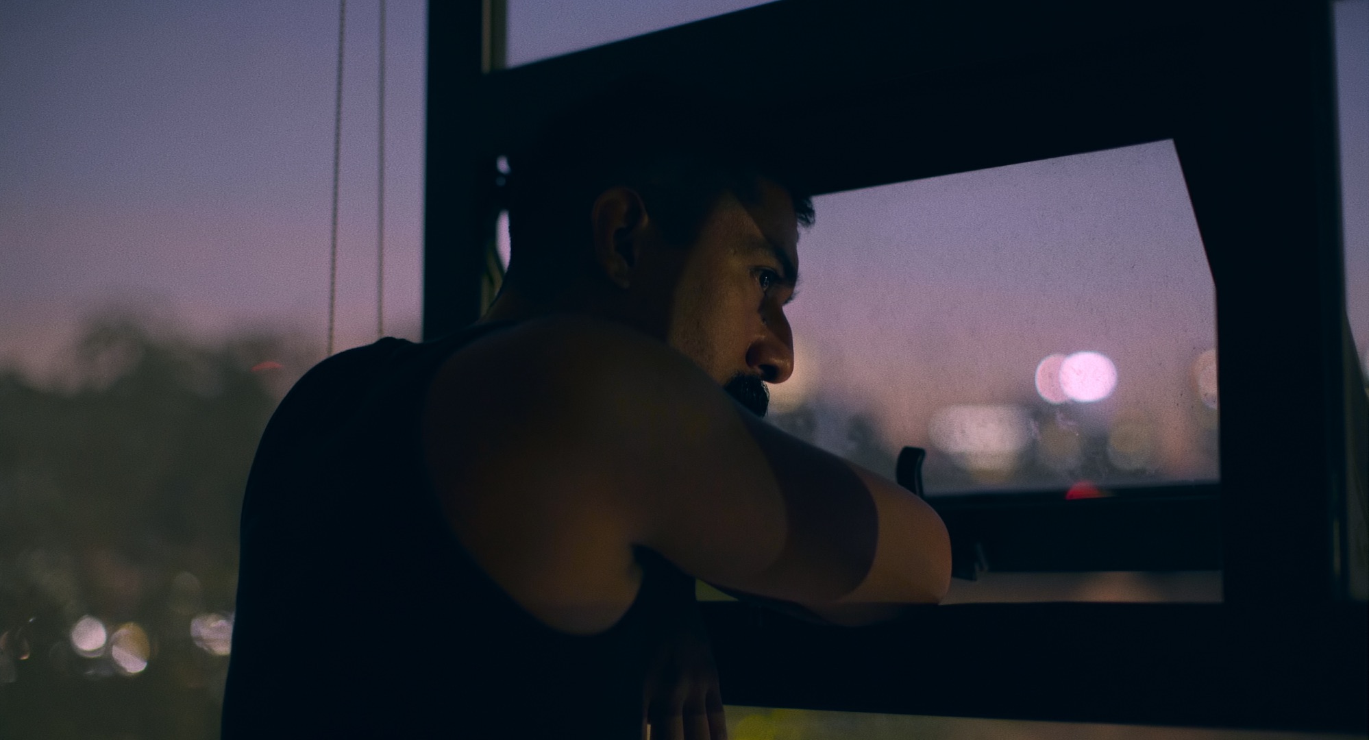 Au milieu des mouvements frénétiques des rues de Mexico City, un homme se différencie par son immobilité. Comme observé depuis la vitrine d’un magasin alentour, il émerge de cette foule anonyme par sa cruelle banalité. Esseulé, il laisse progressivement monter en lui une douleur sourde qui explose en sanglots. Alors que le masque machiste qu’il arbore au quotidien vient de se fissurer, il se révèle aux yeux du spectateur·trice·s dans sa plus pure vulnérabilité. Il s’agit de Lalo (Lalo Santos), un trentenaire, dont l’identité évolue au gré de ses activités. Le jour, il se présente comme un ouvrier hétérosexuel plaisantant avec ses collègues de la prison qu’est le mariage hétérosexuel. La nuit, il trouve des partenaires d’un soir dans les lieux de drague de la capitale mexicaine. Comme lors de la séquence d’ouverture susmentionnée, Manuel Abramovich expose son protagoniste, par des plans larges, dans un espace public banalisé par une vision hétéronormée. Dans Pornomelancolia, la communauté homosexuelle mexicaine s’intègre clandestinement au réel : ses membres se reconnaissant, au détour d’un clin d’œil furtif dans un parc sportif, pour quelques gémissements étouffés aux confins d’une ruelle.