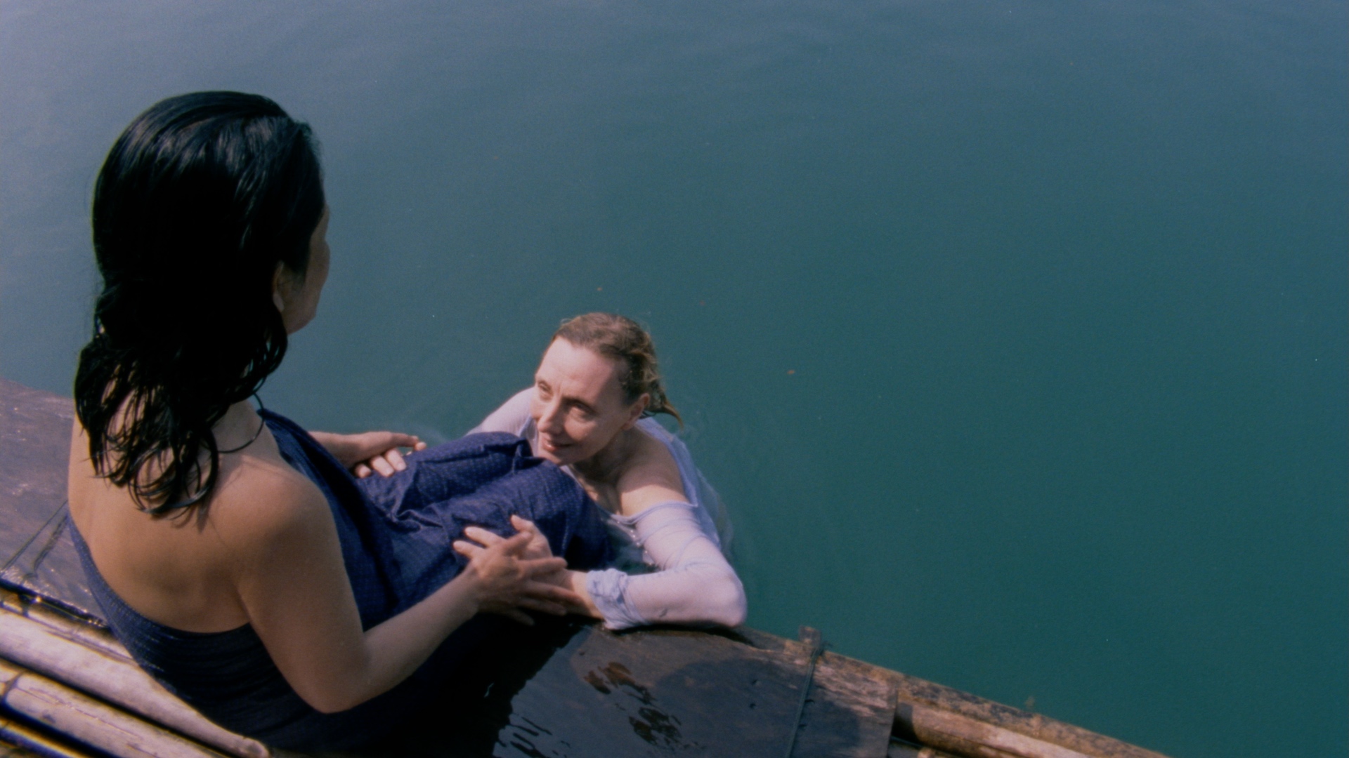 Après les ruines des installations du village des Jeux olympiques d’Athènes de 2004 qu’elle filmait dans Park [2016], Sofia Exarchou s’intéresse aux îles grecques brûlées par le soleil et le tourisme de masse. Elle troque le vide politique de la capitale grecque pour le vide culturel des complexes hôteliers all-inclusive. Animal est l’antithèse des représentations idéalisées de la république hellénique. La Grèce présentée ici est un territoire sans identité propre, l’animatrice Kalia (Dimitra Vlagopoulou) est l’unique Grecque de naissance. Entre les travailleur·euses de l’hôtel et les vacancier·es issu·es du reste de l’Europe se dessine un ersatz de culture où les phrases sont comme préenregistrées, prémâchées par les rouages prévisibles du capitalisme. Bien qu’ailleurs, chacun·e recherche sa propre culture – les vacancières russes demandent qu’on leur chante des chansons russes, des Allemands initient les participant·es d’un karaoké à la schuhplattler. Dans cet univers, l’histoire grecque est réduite à de l’anecdote : une statuette gagnée au bingo, des colonnes de pacotille servant de décor à une chorégraphie sexy mettant en scène des muses aux formes rembourrées. Personne ne désire réellement découvrir la Grèce. Seule Kalia affirme inlassablement en anglais que les paysages sont « magnifiques ».
