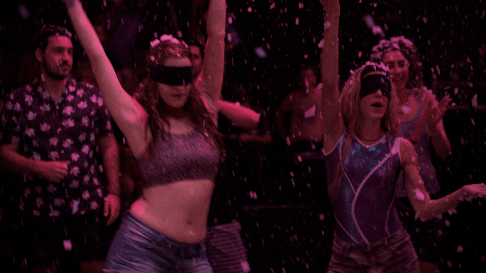 À plusieurs reprises, Kalia explique qu’elle est un « jukebox ». Automatiquement, elle débite la chanson « Yes Sir, I Can Boogie » de Baccara. Cette chanson impose une notion d’exécution – elle peut [can] plus qu’elle ne veut. Comme le langage, le corps se mécanise. Alors que l’été avance, la légèreté des premières séquences où Kalia apprenait allégrement les chorégraphies aux nouvelles recrues s’évanouit. L’« animal » du titre est réduit à sa condition de bétail. Les corps des animateurs, et surtout des animatrices, devient une marchandise exploitée pour assouvir les désirs des vacancier·es. Alors que ces dernier·es se payent le luxe de l’immobilité, les corps des employé·es de l’hôtel miment une frénésie factice. La caméra de Sofia Exarchou fusionne avec les corps de ses personnages qu’elle sublime jusqu’au martyr. La chair se remplit des stigmates d’un été destructeur. Il est impératif de « naviguer dans cette folie » comme le hurle au micro l’animateur de la boîte de nuit où Kalia et ses collègues se font quelques euros supplémentaires.